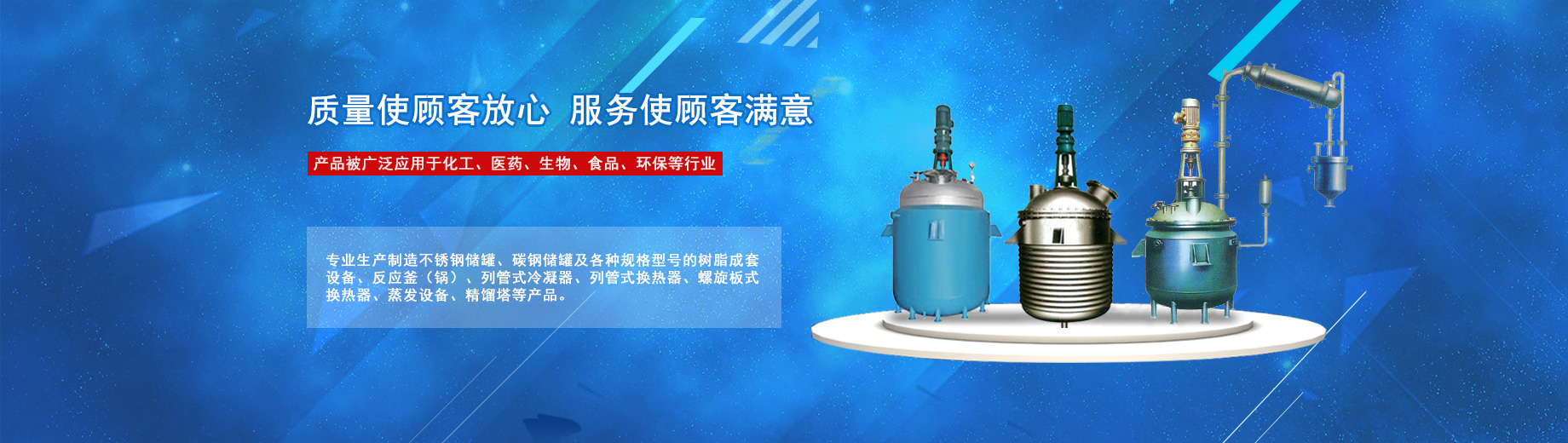 公司專業(yè)生產(chǎn)制造不銹鋼儲(chǔ)罐、碳鋼儲(chǔ)罐及各種規(guī)格型號(hào)的樹(shù)脂成套設(shè)備、反應(yīng)釜(鍋)、列管式冷凝器、列管式換熱器、螺旋板式換熱器、蒸發(fā)設(shè)備、精餾塔等產(chǎn)品,被廣泛應(yīng)用于化工、醫(yī)藥、生物、食品、環(huán)保等行業(yè)。